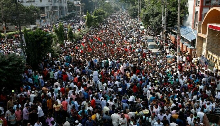 غیرملکی خبر ایجنسی اے ایف پی کی رپورٹ کے مطابق بنگلہ دیش کی دو بڑی اپوزیشن جماعتوں کے ایک لاکھ سے زائد حامیوں نے احتجاج کرتے ہوئے وزیر اعظم شیخ حسینہ سے مستعفی ہونے اور غیر جانب دار حکومت کے تحت آزادانہ اور منصفانہ انتخابات کے انعقاد کا مطالبہ کیا۔