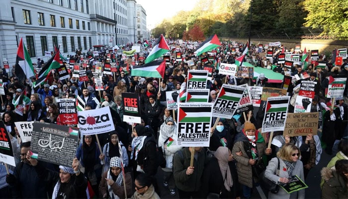لندن پولیس کے مطابق پہلی جنگ عظیم کے خاتمے کے بعد فوجی ایکشن میں ہلاک افراد کی یاد میں منائے جانے والے سالانہ یادگاری دن آرمسٹائس ڈے (Armistice day Commemoration) کے موقع پر فلسطین کے حق میں ہونے والے احتجاجی مظاہرے میں کم از کم 3 لاکھ افراد شریک ہوئے۔