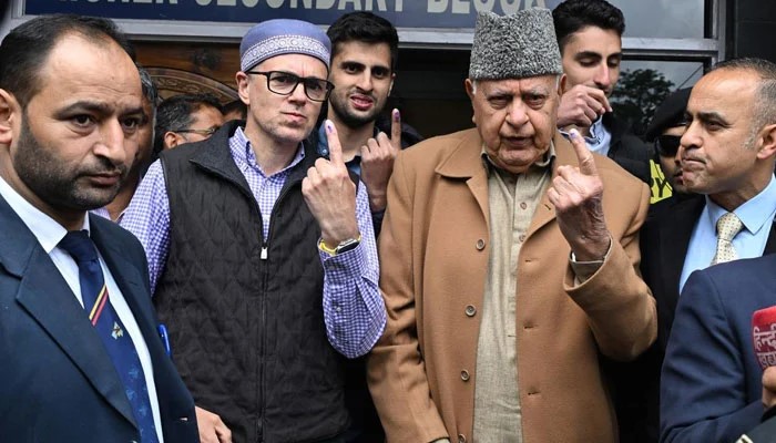 نیشنل کانفرنس کے رہنما فاروق عبداللہ اور ان کے بیٹے عمر عبداللہ نے بھی اپنا ووٹ کاسٹ کیا۔