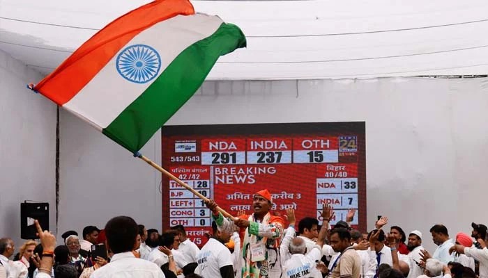 بھارتی میڈیا کے مطابق انتخابات کے نتائج کو دیکھتے ہوئے ابتدائی رجحانات میں مودی کی بی جے پی کو بڑے اپ سیٹ کا سامنا ہے، بی جے پی کو 239 نشستوں پر برتری حاصل ہے اور بی جے پی اتحاد این ڈی 294 نشستوں پر آگے ہے جب کہ کانگریسی اتحاد انڈیا 234 نشستوں پر آگے ہے۔