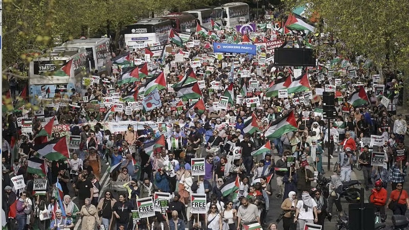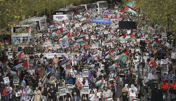 مظاہرین پہلے "راسل” اسکوائر میں جمع ہوئے اور اسرائیل مخالف نعرے لگانے کے بعد برطانوی پارلیمنٹ کی طرف مارچ کیا، اورفلسطینیوں کے بارے میں تل ابیب کی حمایت کے لئے سابق حکومت کے شکست خوردہ راستے کو جاری رکھنے کے بارے میں خبردار کیا۔