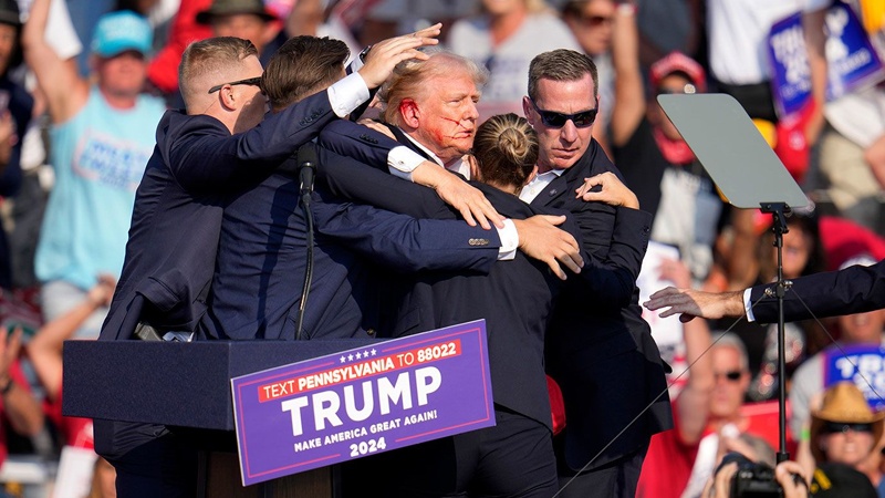 سابق صدر کو محفوظ مقام پر منتقل کردیا گیا ہے۔کاونٹی پراسیکیوٹر نے تصدیق کی ہے کہ ٹرمپ کی ریلی کے دوران فائرنگ سے ایک شخص ہلاک ہوا ہے، ریلی میں فائرنگ کے واقعہ کے بعد ڈونلڈ ٹرمپ محفوظ ہیں اور ان کے حفاظتی اقدامات بڑھادیے گئے ہیں۔