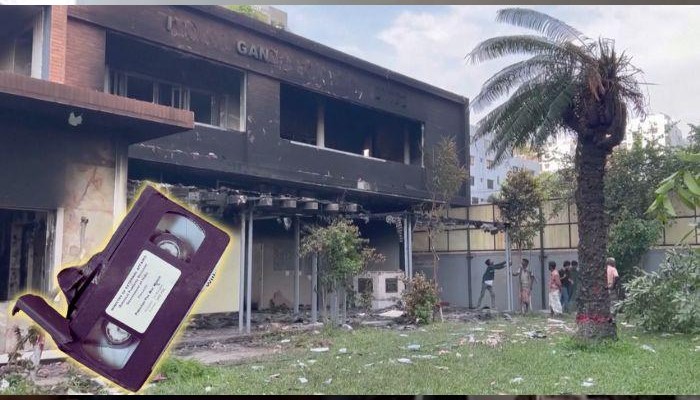 فوٹیج میں عمارت کے اندر ملبے میں ویڈیو کیسٹس کا ڈھیر بھی نظر آرہا ہے جن میں سے ایک ویڈیو کیسٹ پاکستان سے متعلق بھی ہے۔