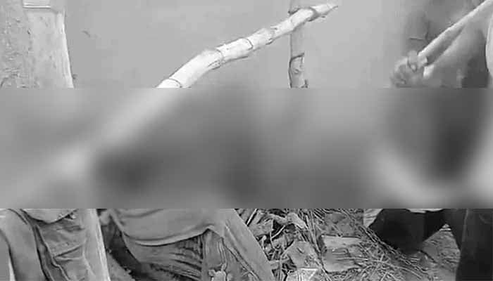 پنچایت کے فیصلے کے مطابق شوہر نے بیوی کو عوام کے سامنے ہاتھ پاؤں باندھ کر بٹھا دیا اور ڈنڈے سے بیوی کو مارا جس کی ویڈیو بھی سوشل میڈیا پر وائرل ہوئی۔
