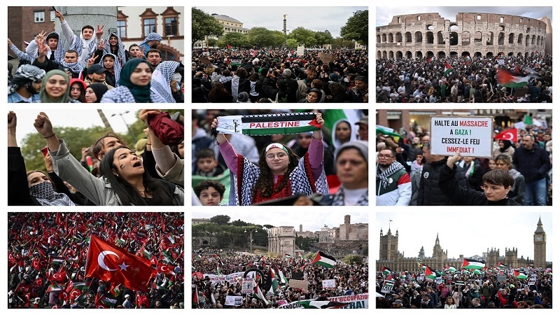 دنیا کے محتلف شہروں میں مختلف ملکوں کے شہریوں کی شمولیت سے غزہ کی استقامت کے عنوان سے کمپین چلائی گئی ۔