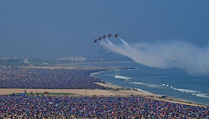 بھارتی شہر چنئی میں فضائیہ کے ائیرشو کے دوران ہیٹ اسٹروک سے 5 افراد ہلاک ہوگئے۔ بھارتی میڈیا کے مطابق گزشتہ روز بھارتی ریاست تامل ناڈو کے شہر چنئی کے مرینا ساحل پر بھارتی ائیر فورس کے ائیر شو میں بد نظمی کا واقعہ پیش آیا۔