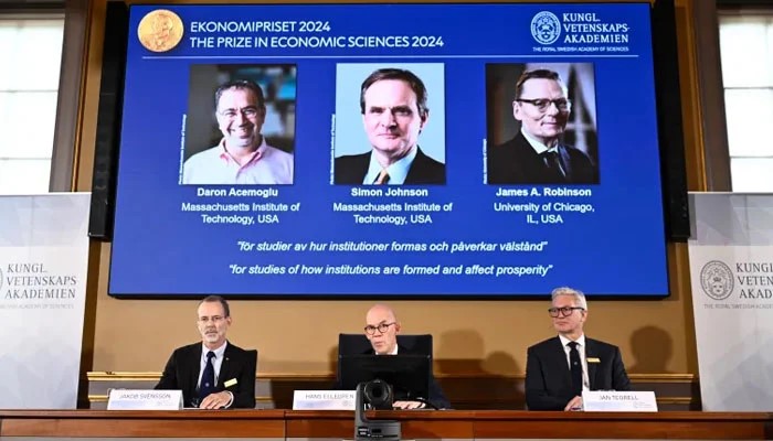 رواں سال معاشیات کا نوبیل انعام مشترکہ طور پر امریکا کے ڈارون ایسیموگلو، سائمن جانسن اور جمیز رابنسن کے نام رہا۔