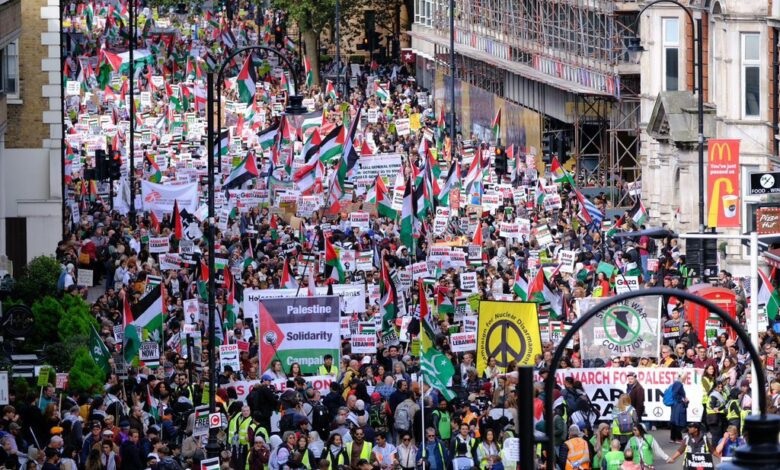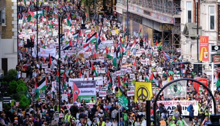 لندن میں مختلف ادیان و مذاہب سے تعلق رکھنے والے ہزاروں افراد نے سڑکوں پر نکل کر فلسطین و لبنان کی حمایت اور نسل پرستی ، صیہونیزم و فاشیسزم کے خلاف نعرے لگائے ۔ مظاہرین اپنے ہاتھوں میں فلسطین اور لبنان کے پرچم اٹھائے ہوئے تھے اور برطانوی حکومت کی جانب سے غاصب و جارح صیہونی حکومت کی حمایت بند کرنے کا مطالبہ کر رہے تھے۔