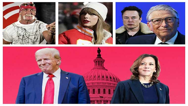 امریکی صدارتی انتخابات بس چند روز کی دوری پر ہیں، ایسے میں متعدد بزنس ٹائیکونز، شوبز ستاروں سمیت معروف شخصیات ڈونلڈ ٹرمپ اور کملا ہیرس کی حمایت میں پیش پیش ہیں اور اپنے اپنے پسندیدہ امیدوار کی کامیابی کے لیے لابنگ کررہے ہیں۔