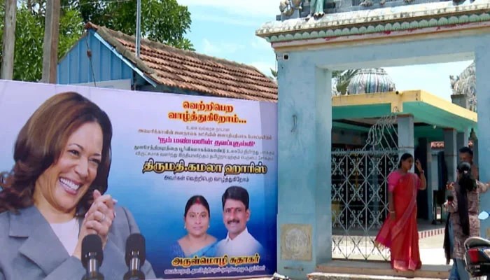 تلاسین دھراپرم گاؤں کے لوگ امریکی صدارتی الیکشن میں بھارتی نژاد کملا ہیرس کو کامیاب ہوتے دیکھنا چاہتے ہیں اور ان کی کامیابی کےلیے گاؤں میں موجود مندر میں دعائیں بھی مانگی جارہی ہیں۔