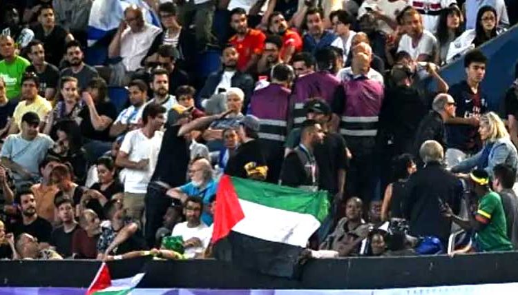 فرانس اور اسرائیل کے درمیان فٹ بال میچ سے قبل شہریوں کا فلسطین کے حق میں احتجاج
