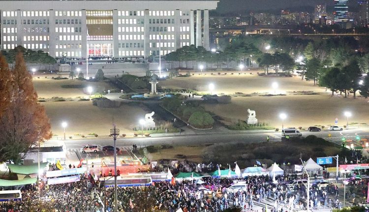مارشل لا کے اعلان کے بعد پولیس نے جنوبی کوریا کی پارلیمنٹ کے داخلی راستے بند کردیے اور اراکین کو پارلیمنٹ میں داخلے سے روک دیا گیا، تاہم اراکین پولیس سے چھڑپوں کے بعد پولیس حصار کو توڑتے ہوئے پارلیمنٹ میں داخل ہوگئے۔