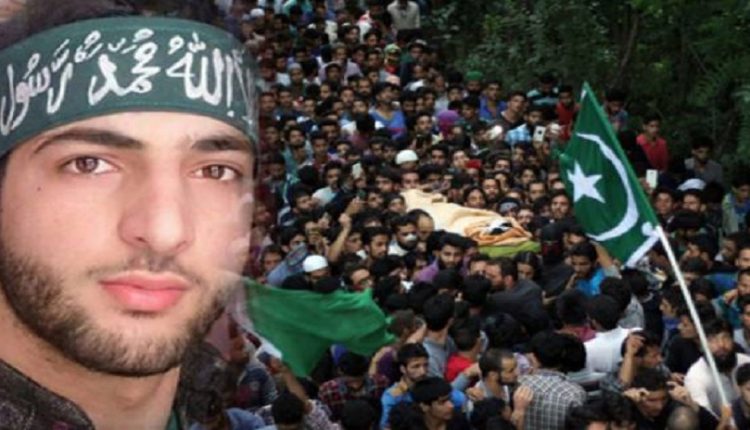 برہان وانی کے جسد خاکی کو پاکستانی پرچم میں لپیٹ کر لحد میں اتارا گیا تھا