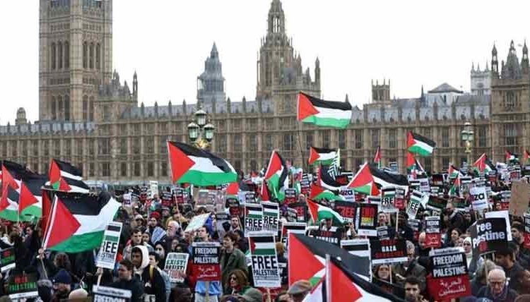 لندن میں پارلیمنٹ اسکوائر پر احتجاجی ریلی میں اسرائیلی مظالم کے خلاف نعرے بازی کی گئی، مظاہرین نے حکومت برطانیہ سے فوری جنگ بندی کے لیے اسرائیل پر دباؤ ڈالنے اور تل ابیب کو اسلحے کی فروخت روکنے کا مطالبہ کیا۔